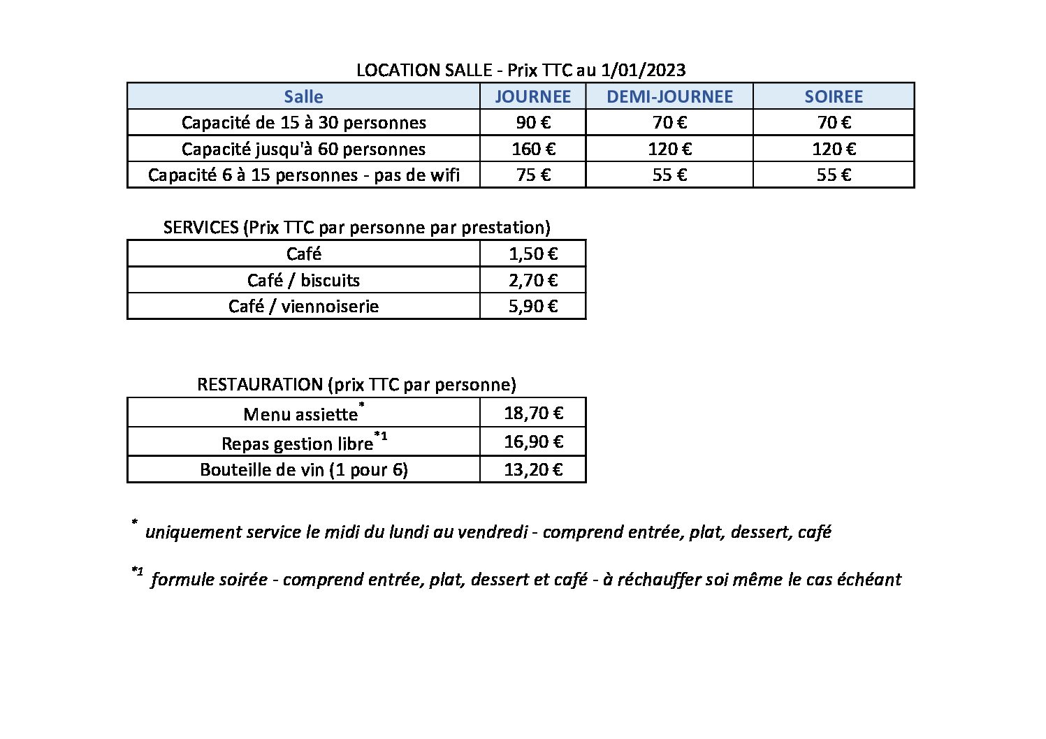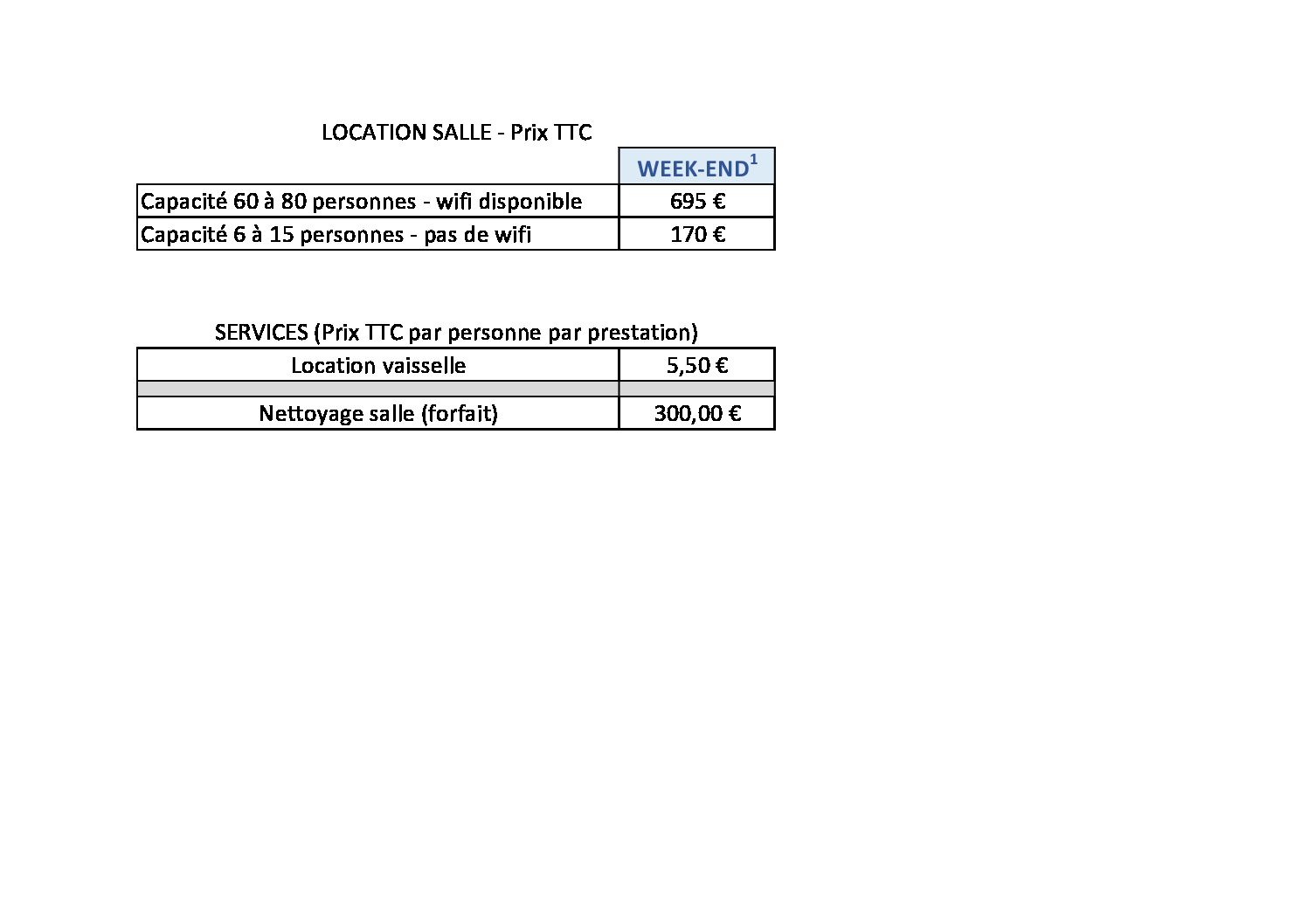 Nous mettons à votre disposition une salle avec réseau Wifi et un espace cuisine pour vous permettre de confectionner ou réchauffer vos repas en gestion libre.